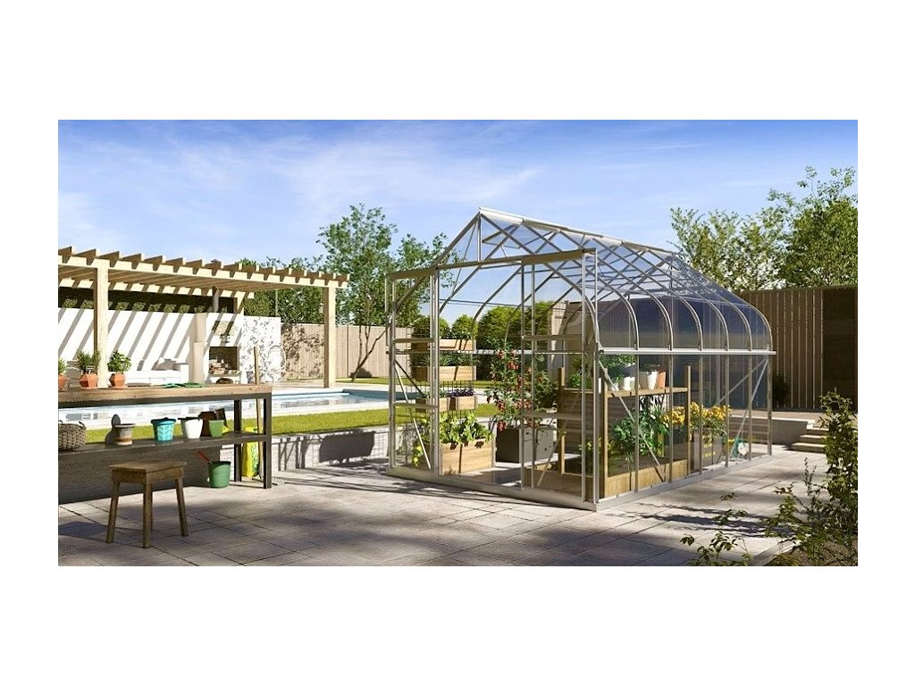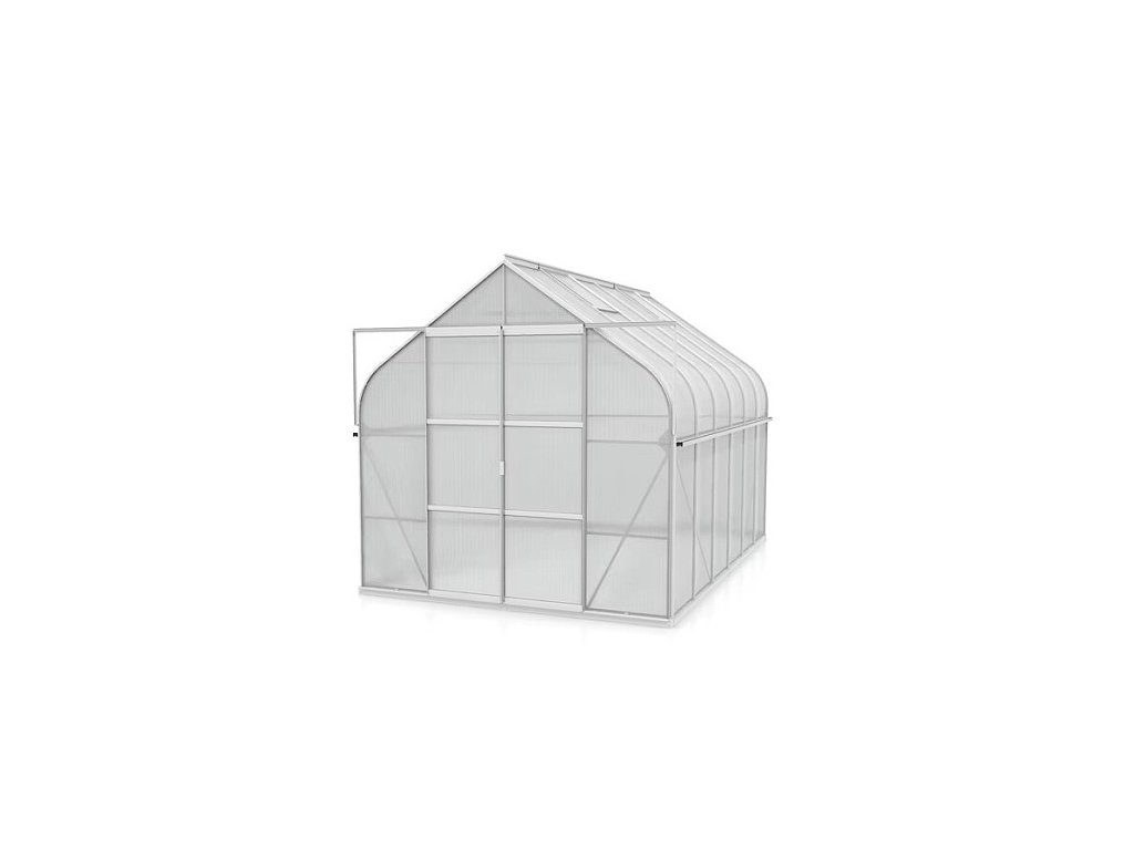 Obsahem balení jsou dvoukřídlé posuvné dveře (š x v otvoru = 1,22 x 2,00 m), AL profily, prosklení, pozinkovaná ocelová základna, 4x střešní ventilační okénko s manuálním otevíráním, veškerý spojovací materiál. Ke skleníku je možné dokoupit řadu nadstandardního příslušenství - poličky, regály, další větrací střešní i boční okénka, automatické otvírače k těmto okénkům, okapové sady, teploměry, vlhkoměry, zavlažovací zařízení, elektrické odporové vytápění půdy.