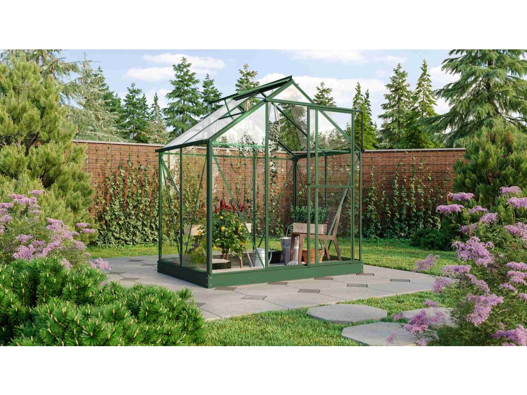 skleník VITAVIA TRITON 2500 čiré sklo 3 mm zelený LG3652 + základna VITAVIA TRITON 2500 zelená LG3655