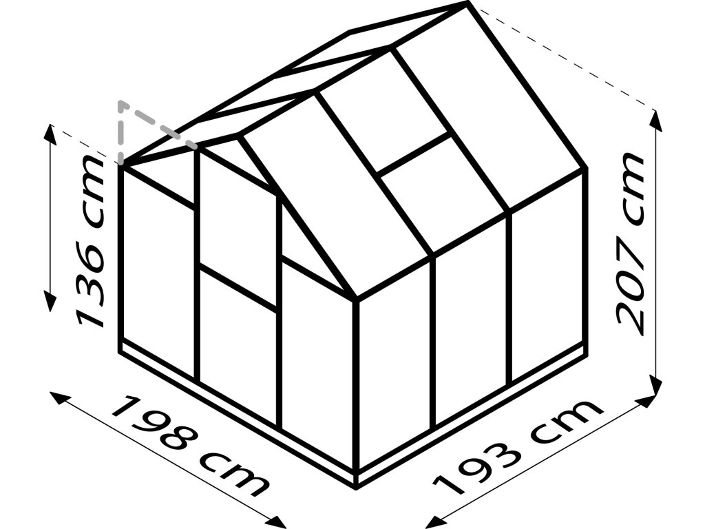 - vnější rozměry š 1,98 x d 1,93 x v 2,07 m