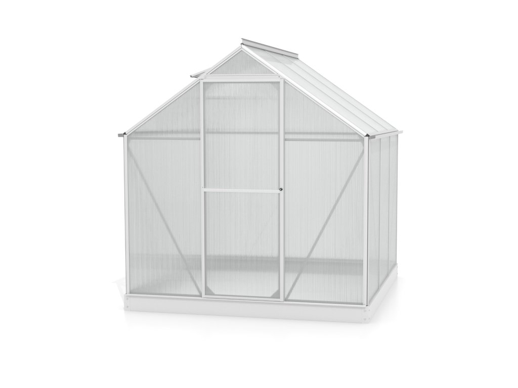Obsahem balení jsou jednokřídlé dveře na pantech (š x v otvoru = 0,61 x 1,64 m), AL profily, prosklení, pozinkovaná ocelová základna, 1x střešní ventilační okénko s manuálním otevíráním, veškerý spojovací materiál. Ke skleníku je možné dokoupit řadu nadstandardního příslušenství - poličky, regály, další větrací střešní i boční okénka, automatické otvírače k těmto okénkům, okapové sady, teploměry, vlhkoměry, zavlažovací zařízení, elektrické odporové vytápění půdy.