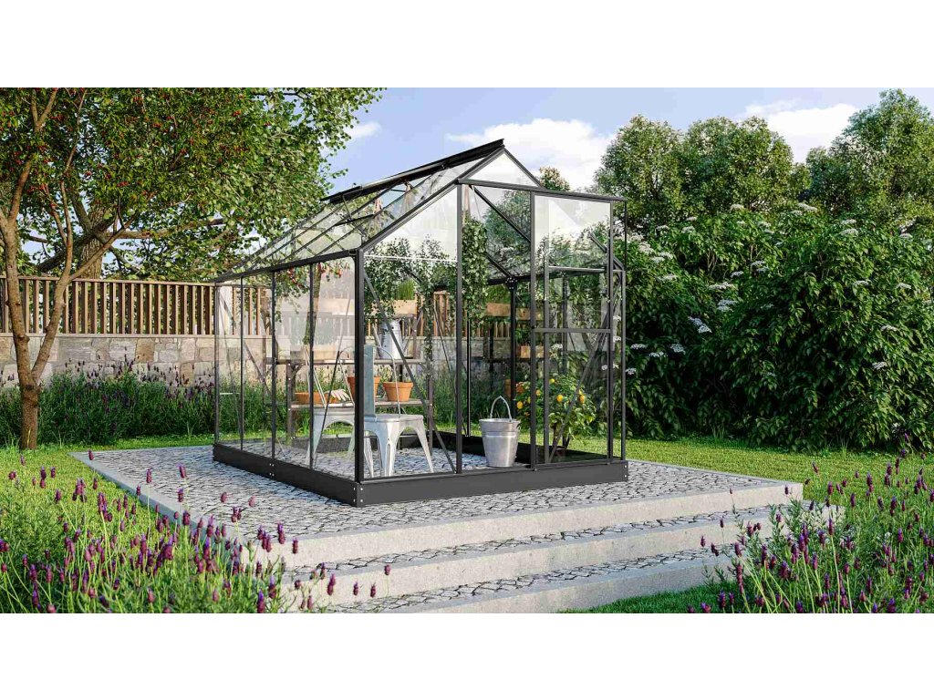 Skleníky řady TRITON jsou zařazeny do kategorie PREMIUM - skleník je vyrobený značkovým výrobcem z Velké Británie a je certifikovaný německou zkušebnou TÜV. Skleník je vyrobený z eloxovaných hliníkových profilů, prosklení je z kaleného čirého skla síly 3 mm. Prosklení je po obvodě zasunuté do plochých a speciálních rohových eloxovaných hliníkových H-profilů. Model TRITON se od ostatních modelů skleníků liší výrazně silnějšími nosnými profily. Jde o řešení, které významně zvýšilo celkovou pevnost a stabilitu celého skleníku vůči větru a i sněhovému zatížení. Čiré sklo zajišťuje výbornou světelnou propustnost, takže do skleníku je krásně vidět ze všech stran a kdykoliv se můžete pokochat pohledem na pěstovanou zeleninu nebo květiny.
