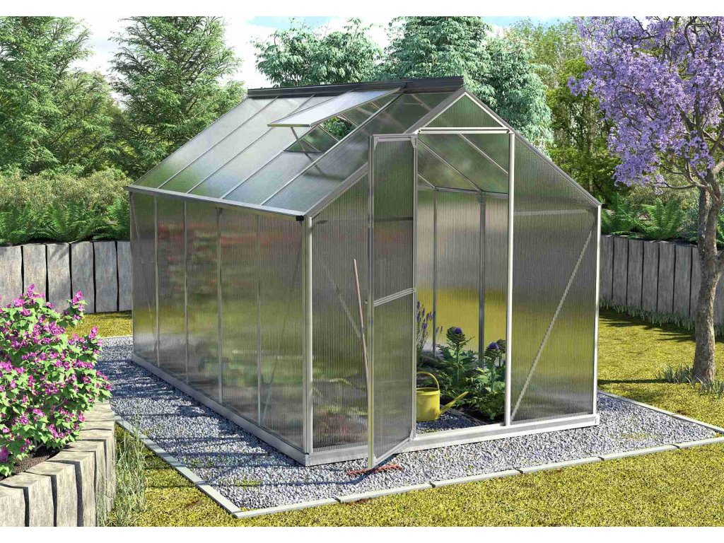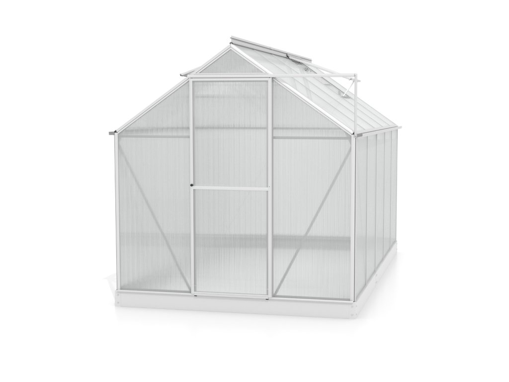 Obsahem balení jsou jednokřídlé dveře na pantech (š x v otvoru = 0,61 x 1,64 m), AL profily, prosklení, pozinkovaná ocelová základna, 2x střešní ventilační okénko s manuálním otevíráním, veškerý spojovací materiál. Ke skleníku je možné dokoupit řadu nadstandardního příslušenství - poličky, regály, další větrací střešní i boční okénka, automatické otvírače k těmto okénkům, okapové sady, teploměry, vlhkoměry, zavlažovací zařízení, elektrické odporové vytápění půdy.