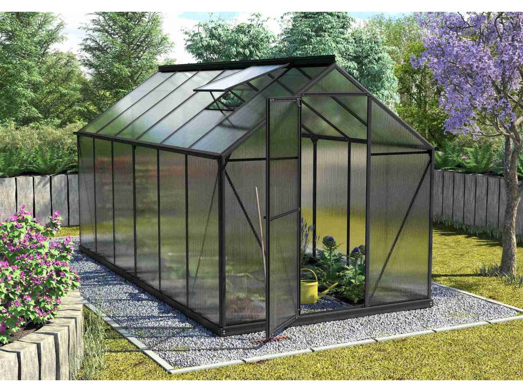 Polykarbonát - prémiový německý polykarbonát 4 mm s UV filtrem (na slunci a mrazu nekřehne ani nežloutne). Smluvní prodloužená záruka 10 let na nerozbitnost polykarbonátu krupobitím je u skleníků od LANIT PLASTU samozřejmostí.