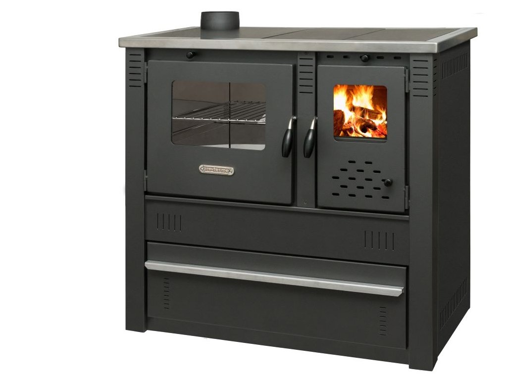 Kuchyňská kamna na tuhá paliva pro topení, vaření a pečení jsou vyrobeny v jednoduchém a vkusném provedení. Nerezová trouba s polohovacím roštem pro snadnou příparvu pečených pokrmů.