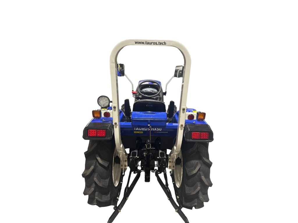 Tauros HX50 4x4 je všestranný traktor, který v sobě kombinuje robustní konstrukci, spolehlivý výkon a snadné ovládání. Díky kompaktním rozměrům je ideální volbou pro práci v úzkých meziřadích, na menších pozemcích nebo v náročnějším terénu. Stroj vyniká výbornou manévrovatelností díky hydraulickému posilovači řízení a bezpečnostním prvkům jako je pevný ochranný rám ROPS. Nebojí se stoupání, nerovností ani náročného příslušenství. Má dostatečnou kapacitu zdvihu a 3bodový závěs kategorie I, což z něj dělá univerzální malotraktor pro připojení celé řady příslušenství. Konstrukce traktoru navíc umožňuje snadné ovládání, komfortní jízdu a bezpečný provoz i v těžkém terénu.