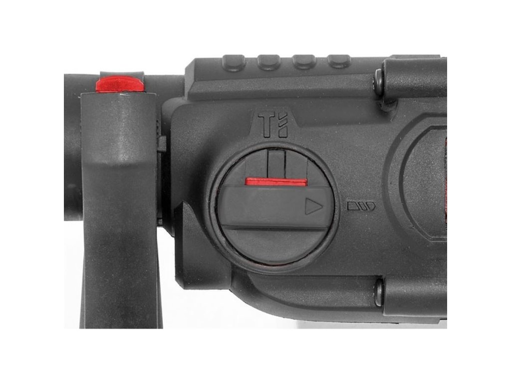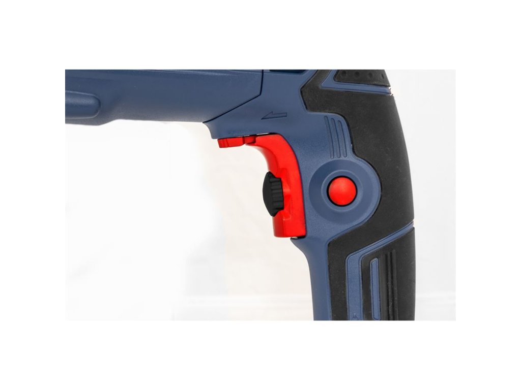 • Konstrukce: rychloupínací sklíčidlo SDS-plus, hloubkový doraz, protiprachová krytka, ergonomicky tvarovaná rukojeť s tlumicí vložkou a indikátorem napětí (-> LED dioda), otočné boční držadlo.