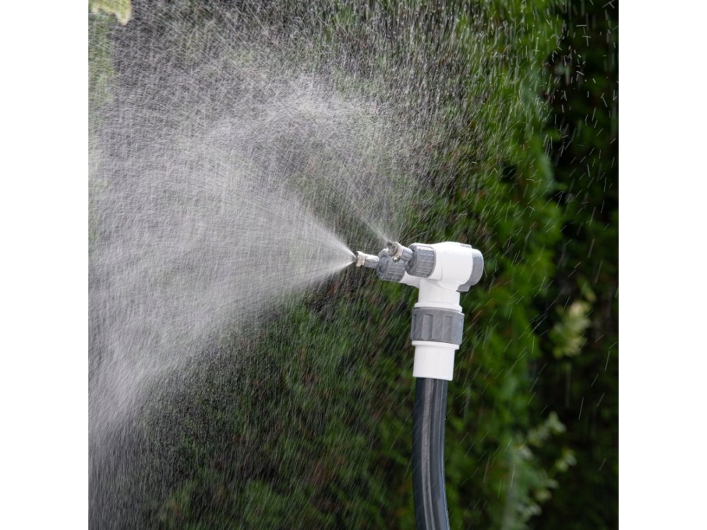 Stačí připojit k vodní hadici, nastavit směr trysek a užívat si příjemné osvěžení v horkých dnech.
